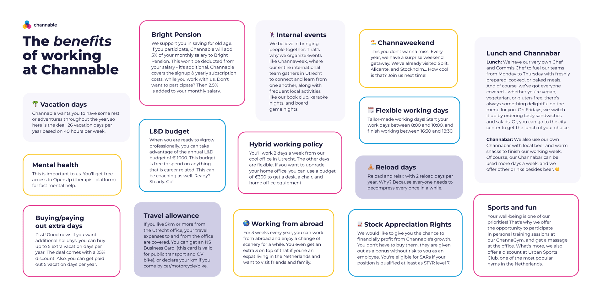 Channable does not use WhatsApp messages to offer positions. We will never request money, checks, equipment orders, or sensitive personal data during the recruitment process. If you are asked for any of the above, if you believe someone is posing as a Channable employee, or if you notice signs of misuse, please contact Channable via privacy@channable.com.